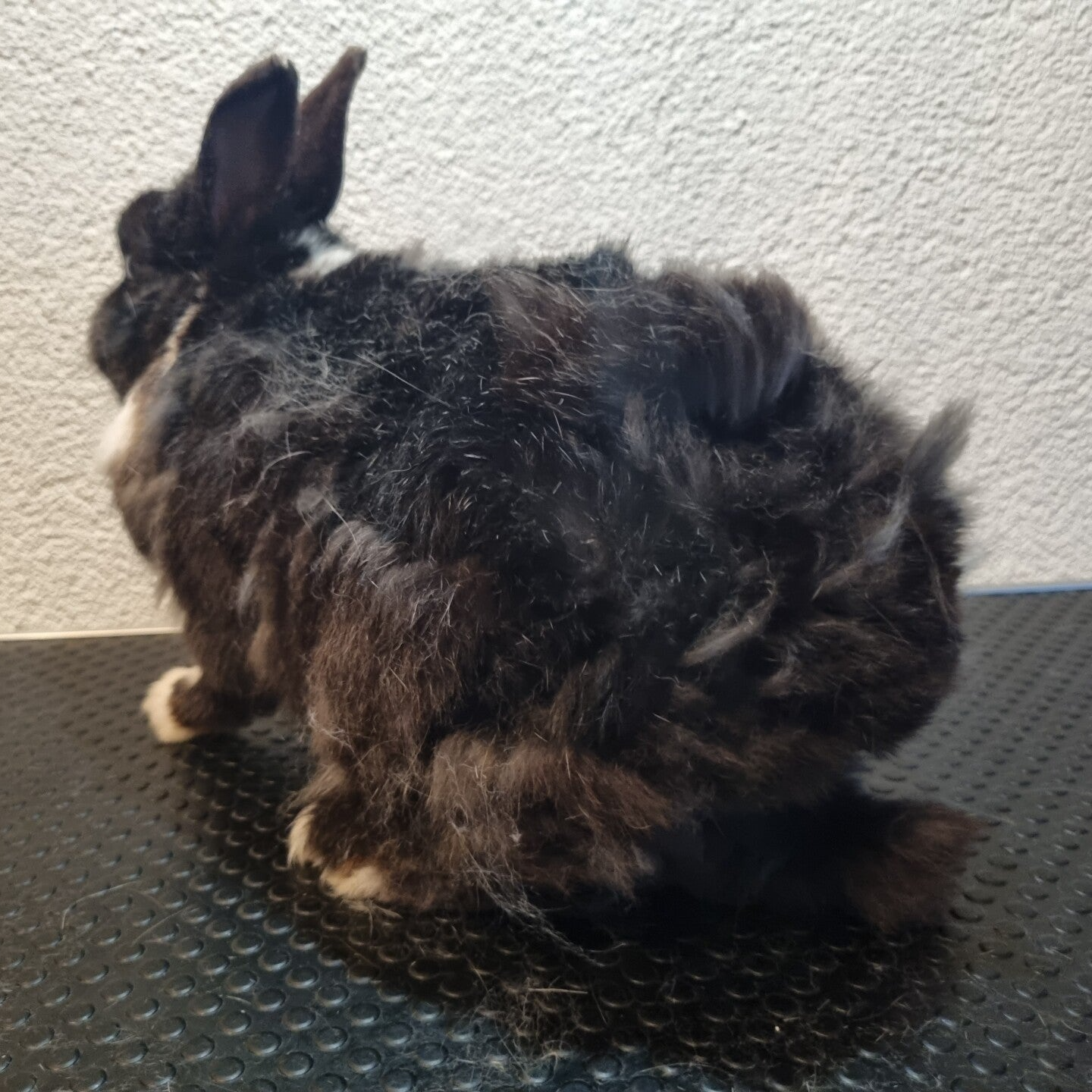 Borstel goed aan de achterkant, waar vaak het losse haar blijft zitten en vervilt. Let er op dat je zacht door de vacht heen gaat. Borstel dus zonder te duwen en gebruik geen kracht. Op die manier raak je de huid van het konijn niet en haal je alleen het losse haar uit de vacht 🐰❤️