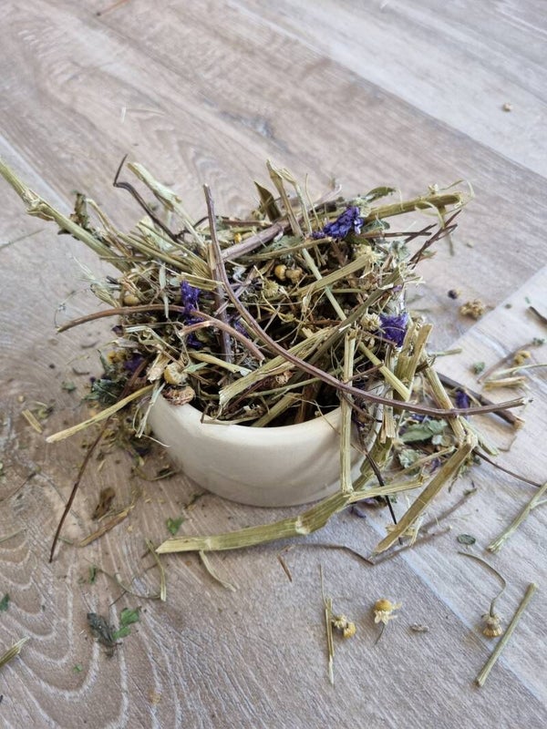 Mix bestaande uit hoogwaardige en exclusieve kruiden. Exclusief en speciaal ontwikkeld door Het Pluishuis. Geschikt voor elk type konijn: langharig én kortharig.